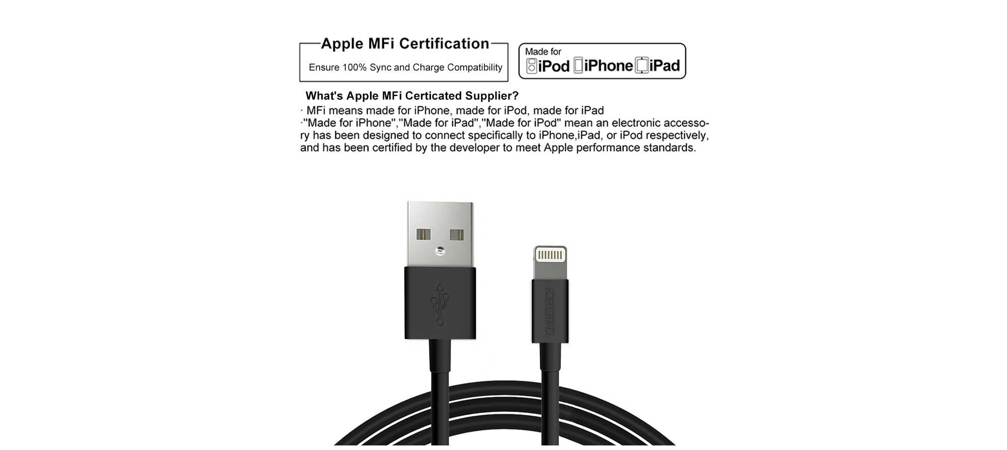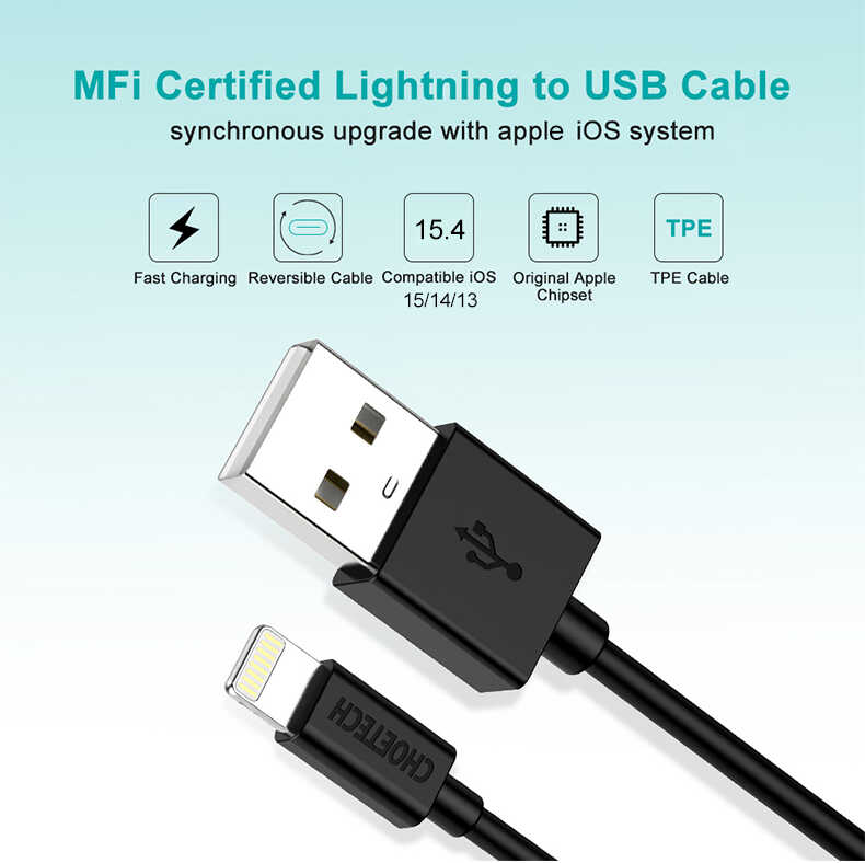 Apple MFi Certified Lightning to USB Cable, Ensure 100% Sync and Charge Compatibility.