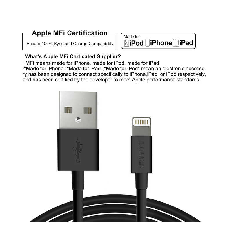 - With Apple MFi certification, the cable can charge iPhones and iPads at full speed, also provide data transmission with up to 480Mbps, a perfect cable for both charging and data transmission.