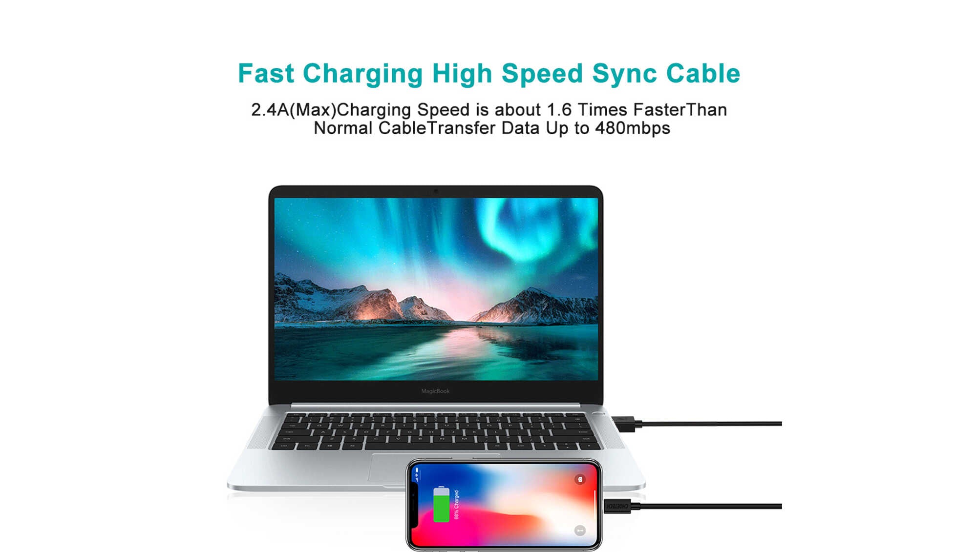 The output current of this cable is 2.4A(Max), about 1.6 times faster than normal cable.