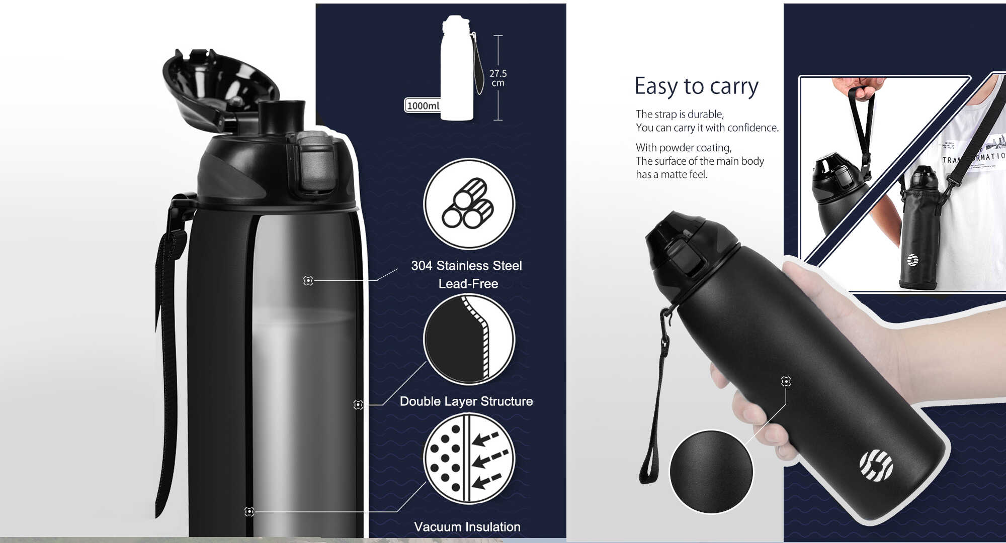 - Safe and Durable: Made with 304 food-grade stainless steel, this bottle is both safe and durable, free of LEAD.