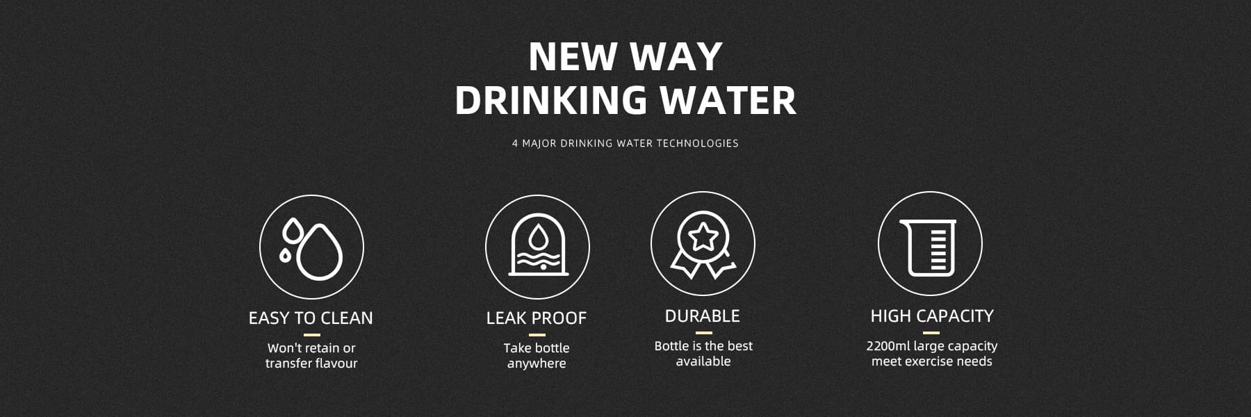 - With a 2.2L capacity, you'll have enough water to last all day, and the leak-proof screw cap and carry handle make it easy to take with you wherever you go.