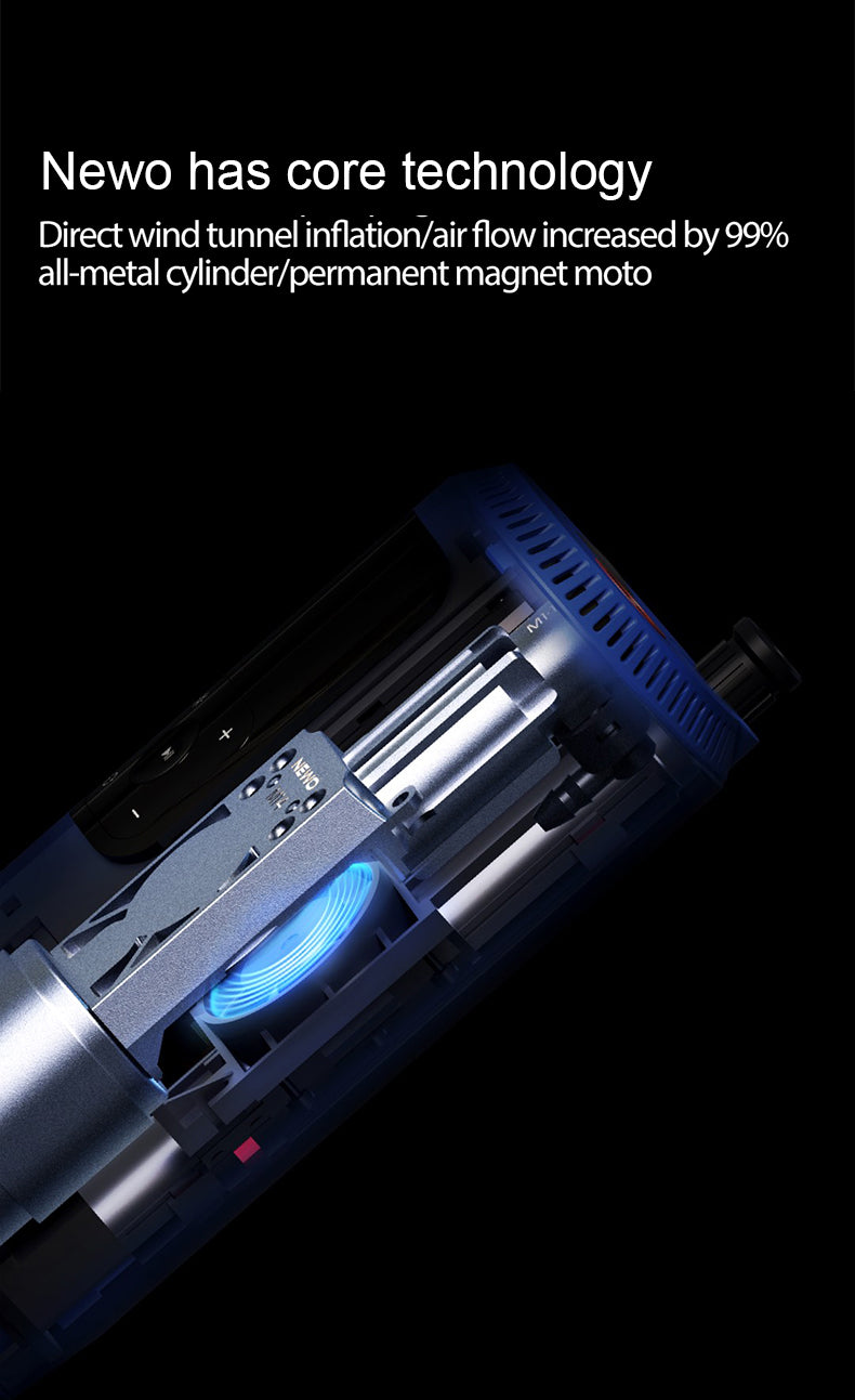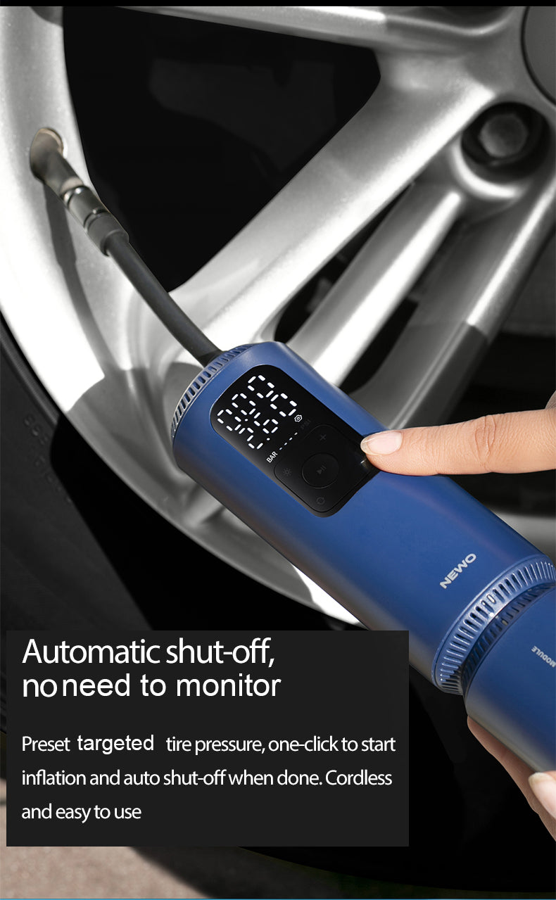 Unlock the simplicity of inflating tires, balls, and more with the NEWO MINI Air Pump, designed to make your life easier with its portable and intelligent design. Now, you can enjoy hassle-free inflation powered by innovative technology.
