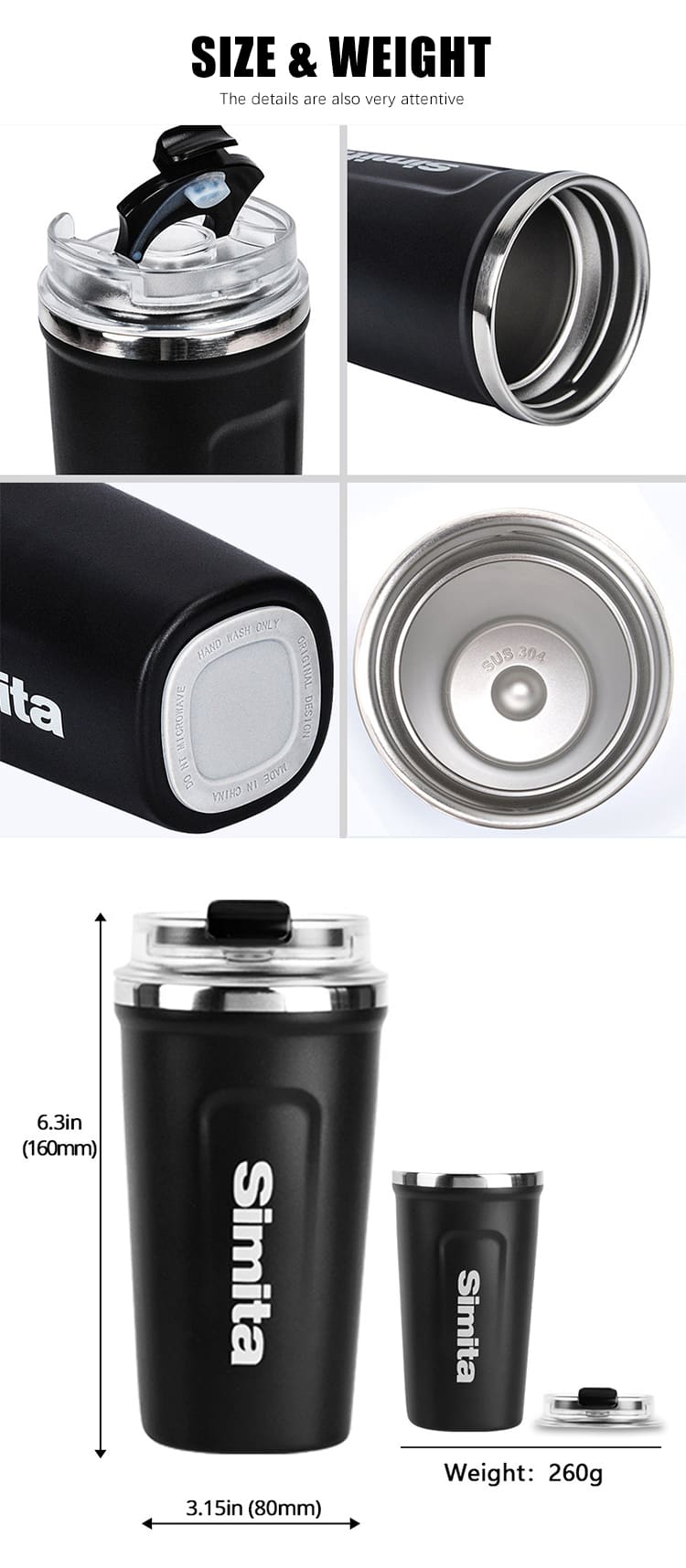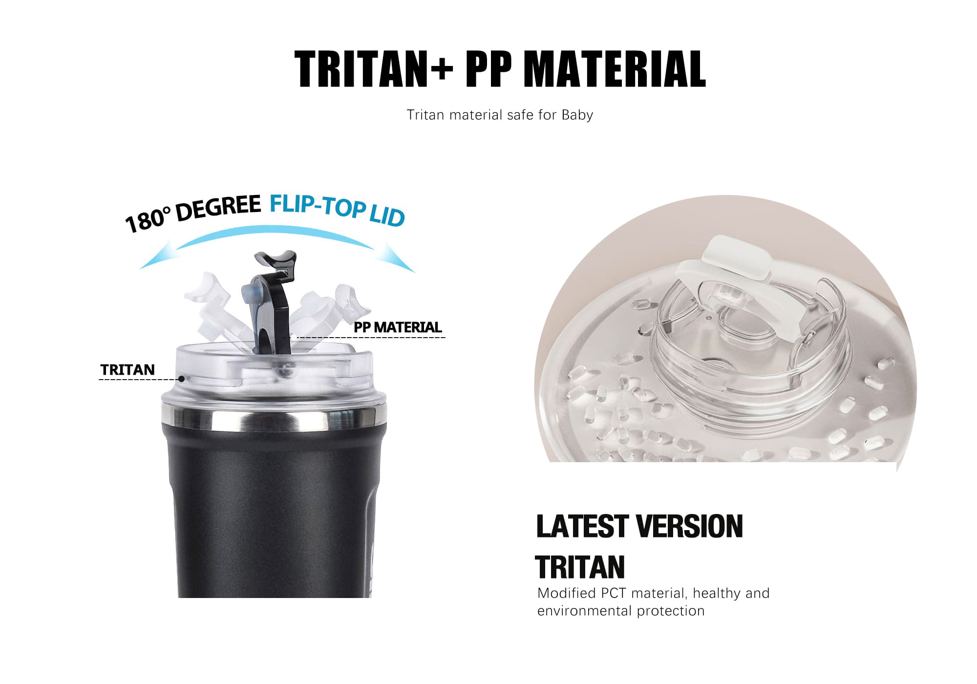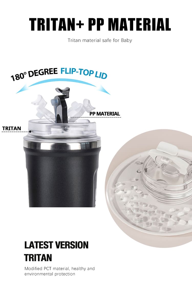- The lid is designed with a flip-top for easy sipping and is made from food-grade Tritan and PP materials.