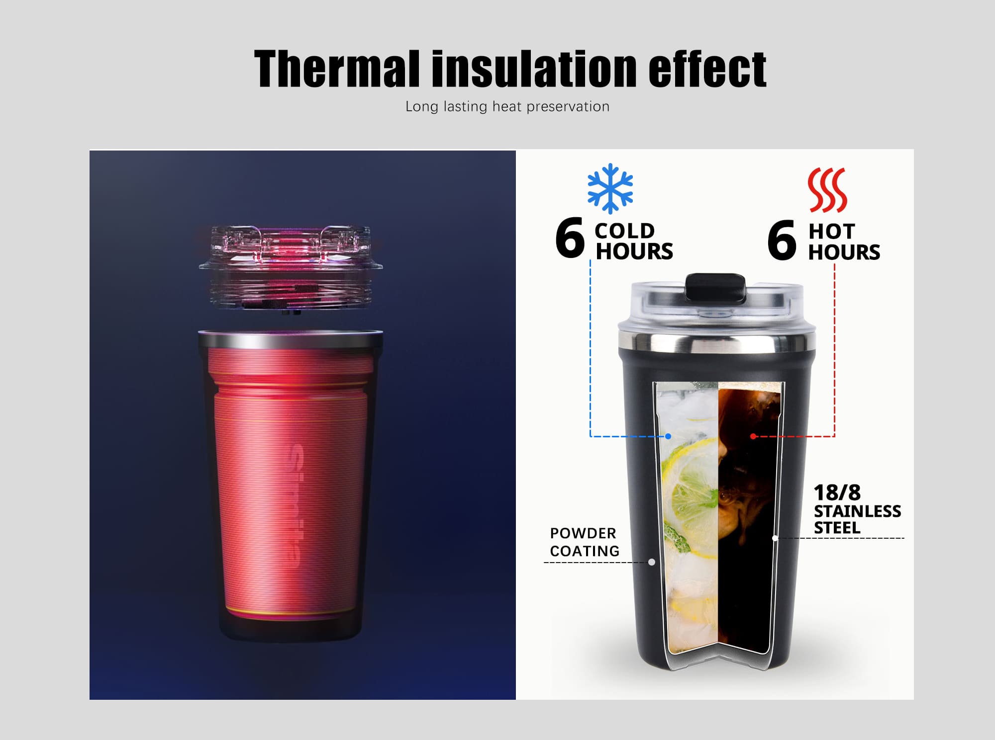 - The double-layer vacuum insulation technology means that you can keep your hot drinks warmer for 6 hours, and cold drinks chilled for 12 hours.