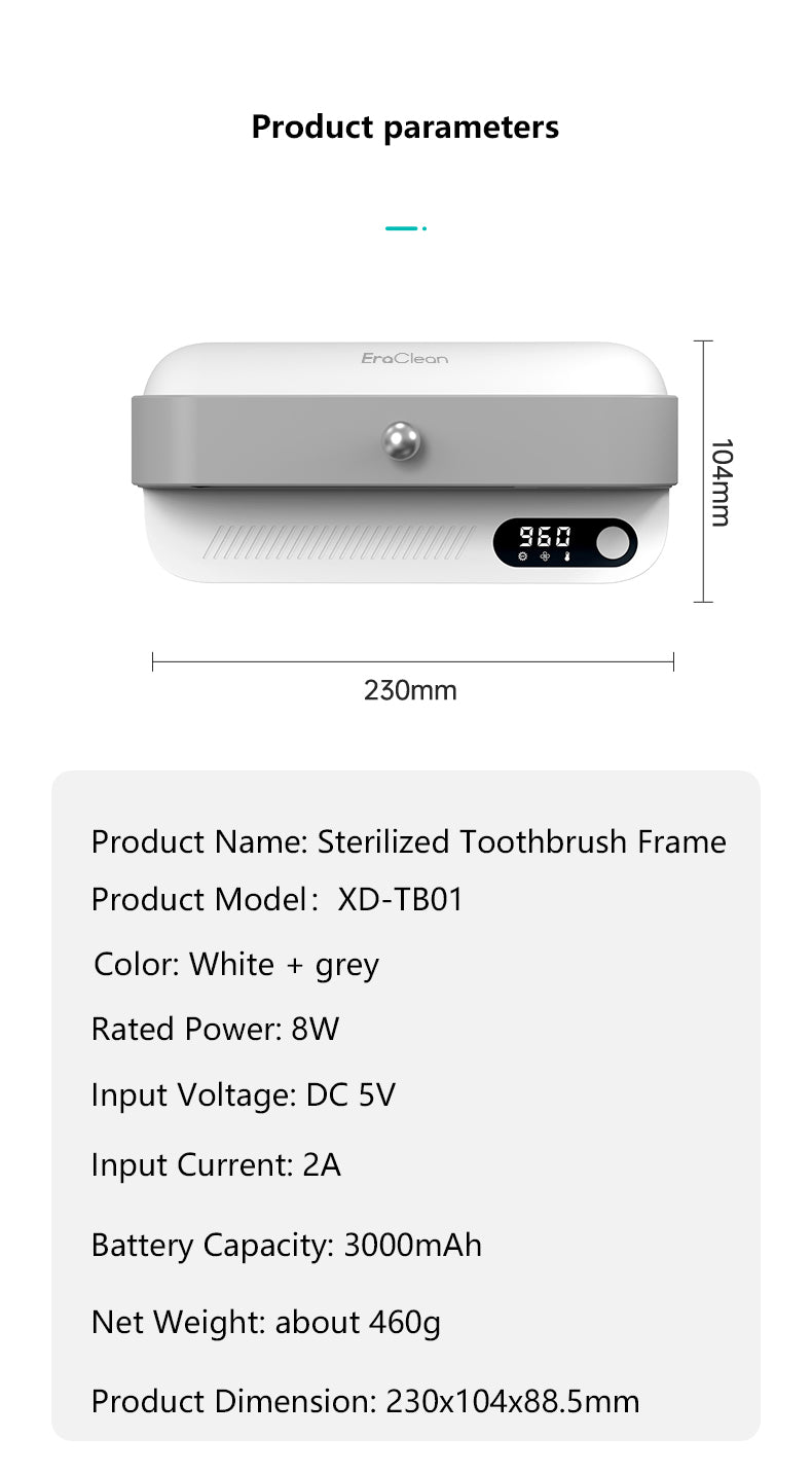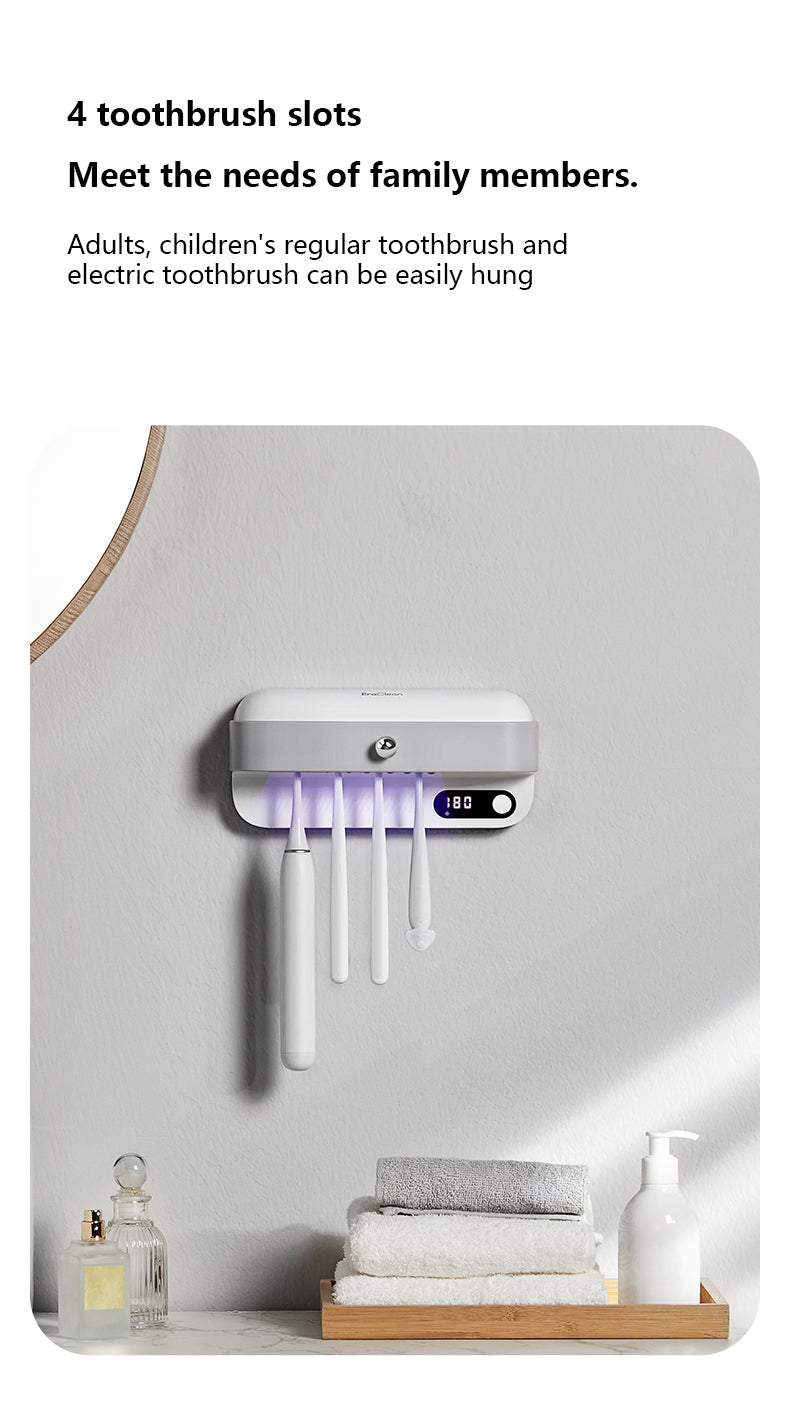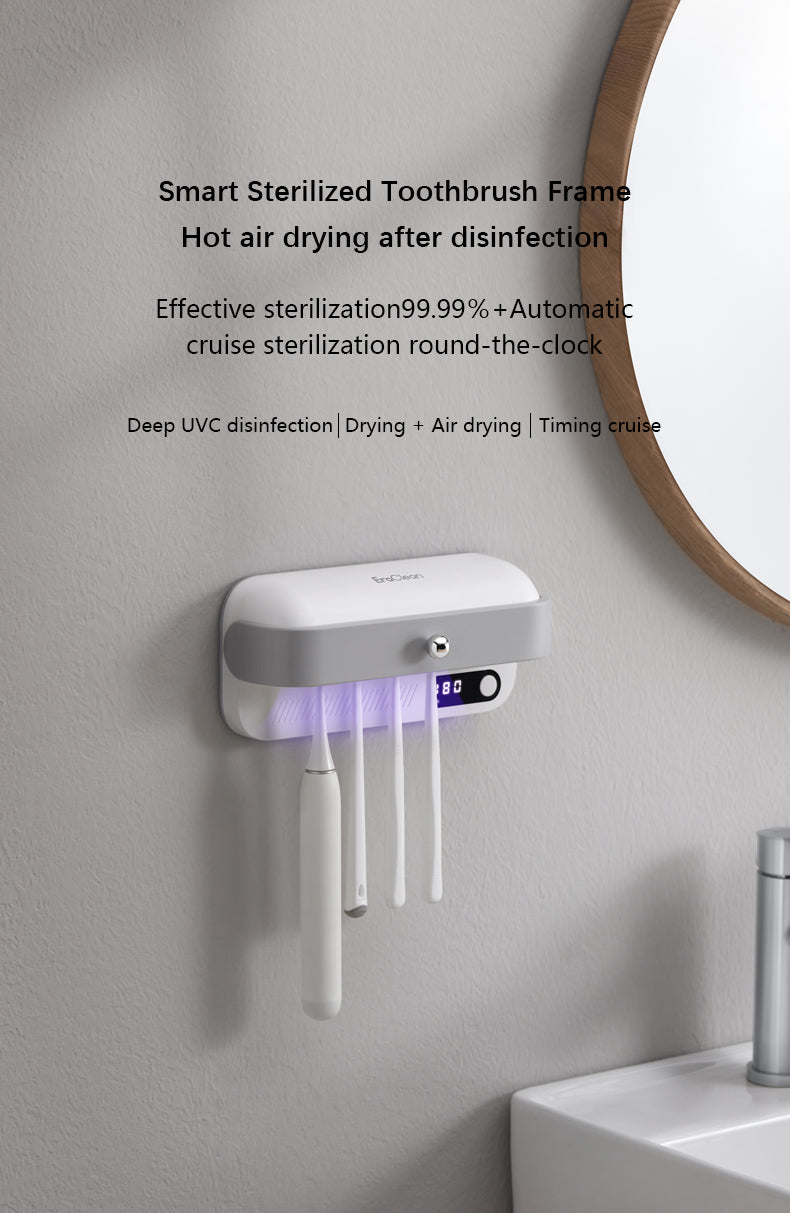Introducing our Sterilized Toothbrush Frame, the perfect solution for keeping your toothbrushes clean and germ-free. With its innovative deep ultraviolet sterilization technology, this toothbrush holder kills bacteria instantly, ensuring that you and your family always have a clean toothbrush to use.