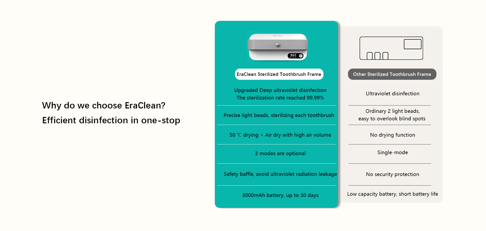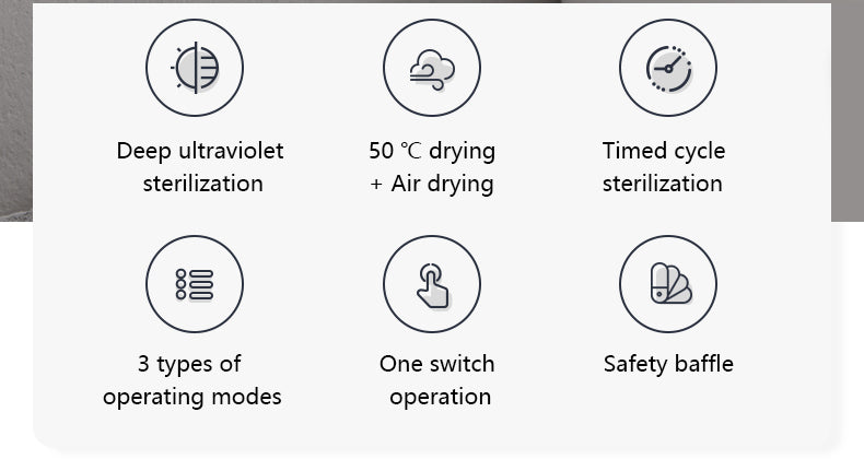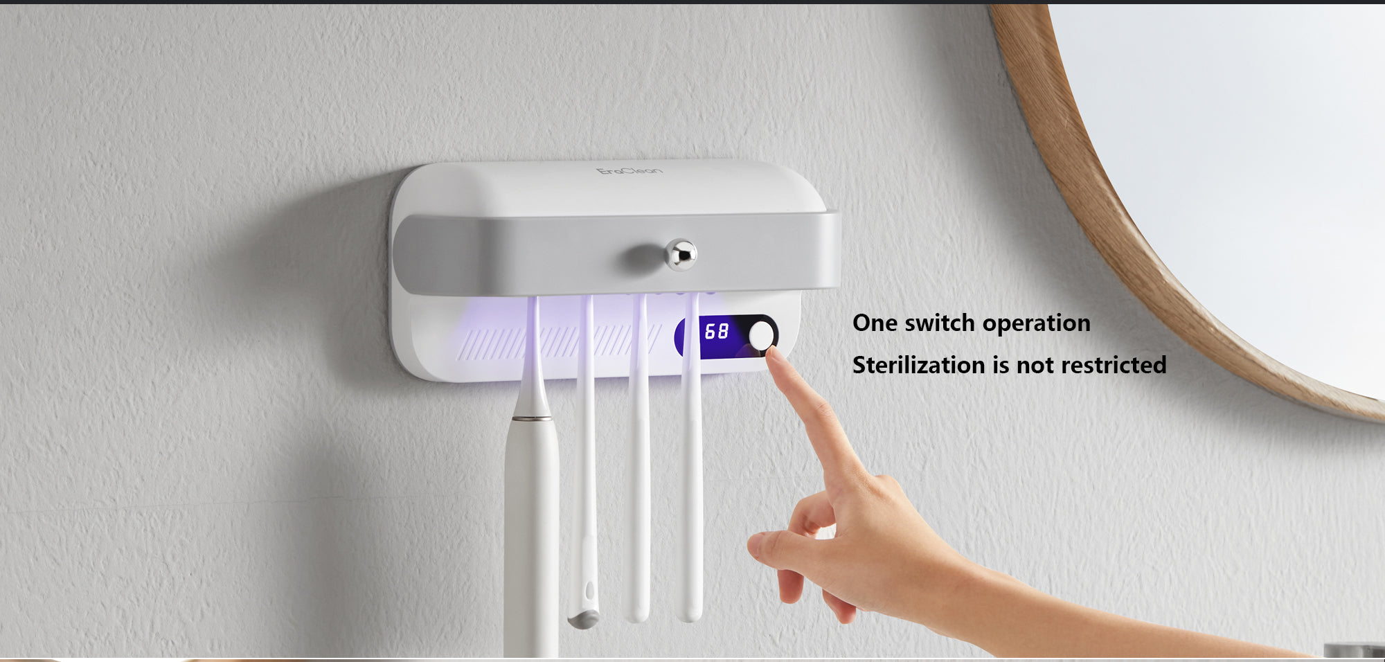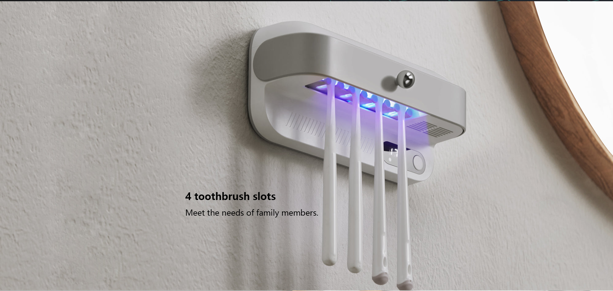 - This toothbrush holder also comes with 3 modes of disinfection, ensuring long-lasting use. It has a simple one-switch operation, making it easy to use without any restrictions. The safety baffle design also automatically stops the device from working when the baffle is opened.