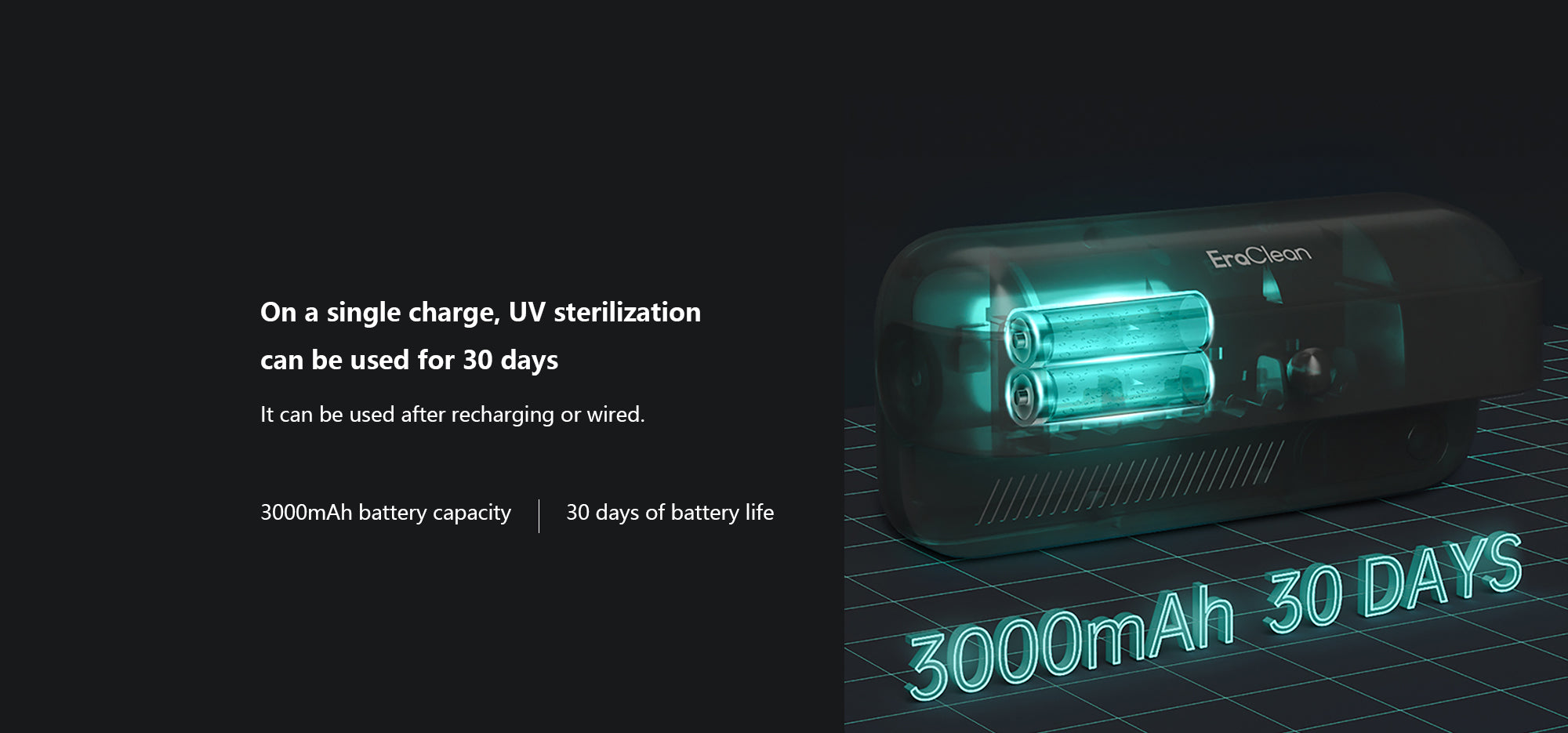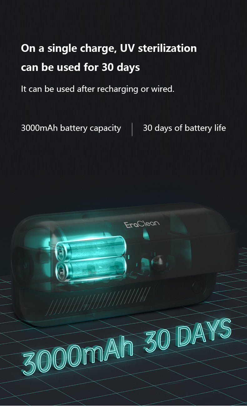 - With a 3000mAh battery capacity, this toothbrush holder can be used for 30 days on a single charge for UV sterilization. It has 4 toothbrush slots, making it perfect for family use, and the key parts can be disassembled for easy cleaning.