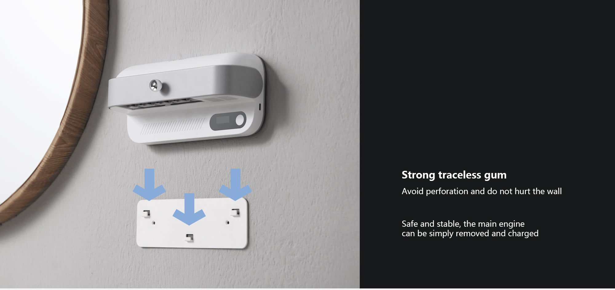 - Finally, the strong traceless gum avoids perforation and doesn't damage the wall, making it easy to install and move around.