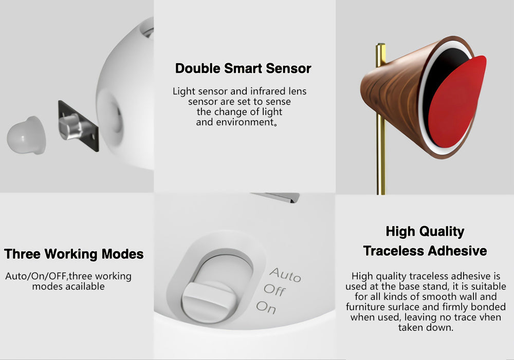 - Our two-point-positioning magnetic design ensures that the sensor is always placed forward, providing maximum efficiency and convenience. With three working modes (Auto/On/Off), you can easily control the light to suit your needs. Plus, the Sunny Night Light is designed to fit seamlessly into every corner of your life, with a separate design that allows it to be placed anywhere you need it.